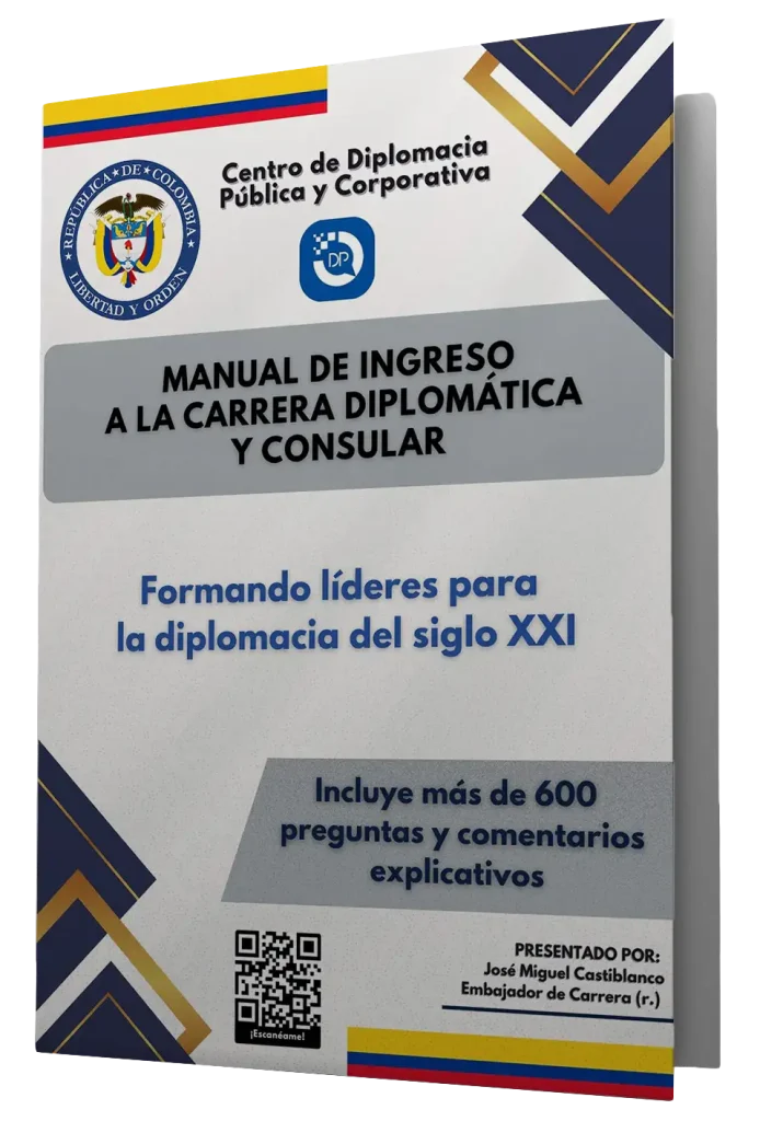 Este Manual es el primer y más completo recurso editorial digital diseñado específicamente para quienes desean ingresar al selecto grupo de profesionales del servicio exterior colombiano. Su contenido ha sido estructurado por diplomáticos y académicos con reconocida experiencia en política exterior, derecho internacional, historia, economía, derechos humanos, fronteras y normativa constitucional, entre otras áreas.
